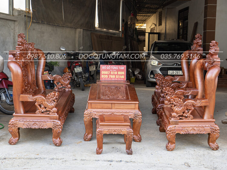 Bàn ghế Nghê Đỉnh gỗ Hương Đá cột 14 là một trong những mẫu nội thất phòng khách cao cấp được ưa chuộng nhất hiện nay. Với thiết kế chạm khắc tinh xảo hình Nghê Đỉnh uy nghi, kết hợp chất liệu gỗ Hương Đá đỏ đẹp, vân cuộn đều, thơm nhẹ, bộ bàn ghế này không chỉ thể hiện đẳng cấp gia chủ mà còn mang ý nghĩa phong thủy may mắn, thịnh vượng.