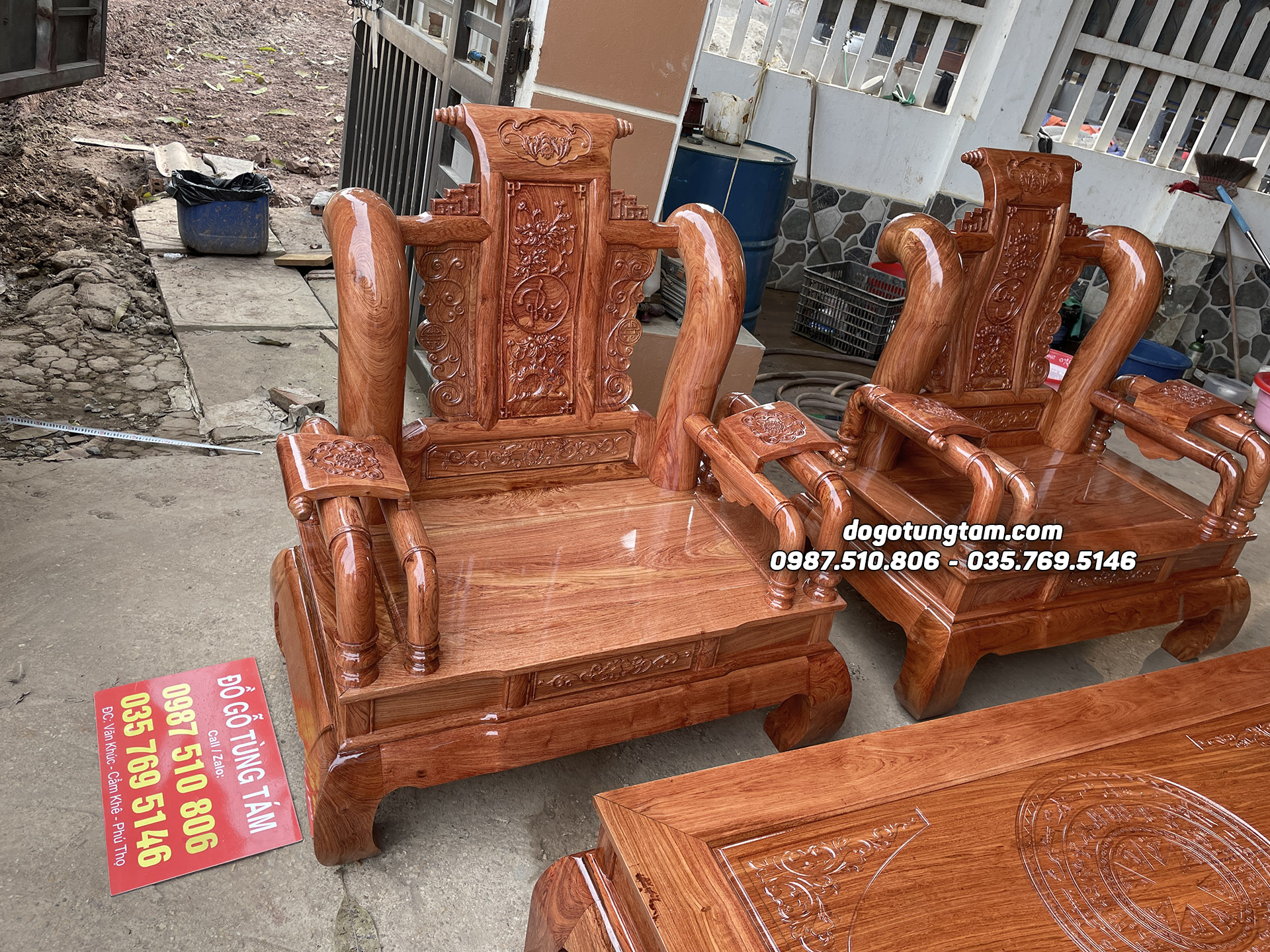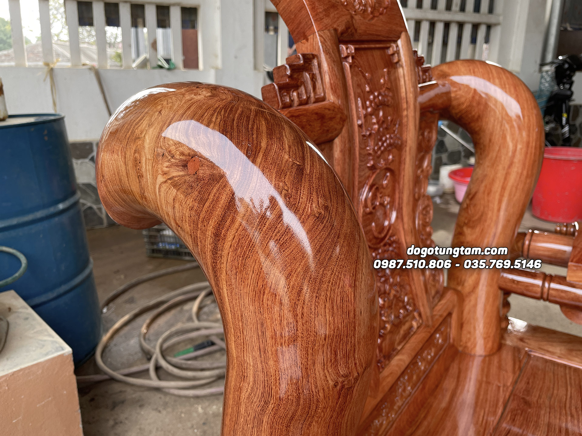 Hoàn thiện bàn Ghế Tần Thủy Hoàng gỗ hương đá tay 12