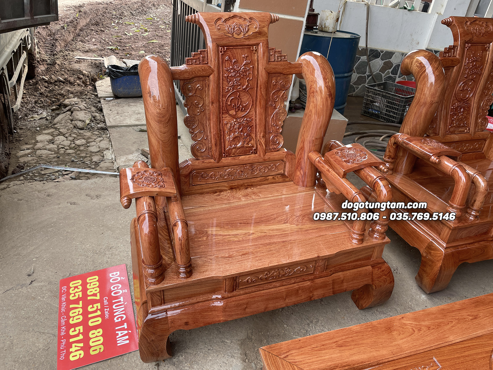 Hình ảnh chi tiết bộ bàn ghế tần thủy hoàng gỗ hương đá tay 12
