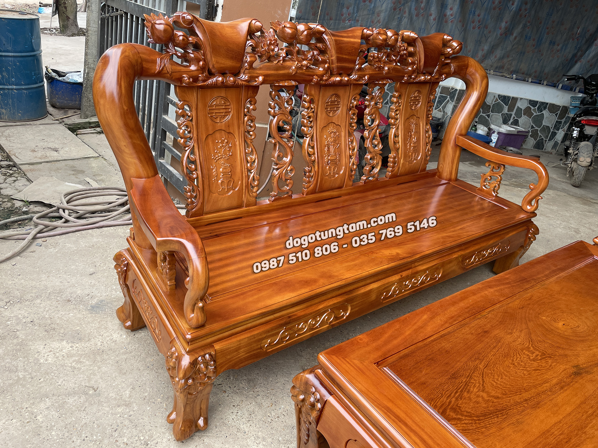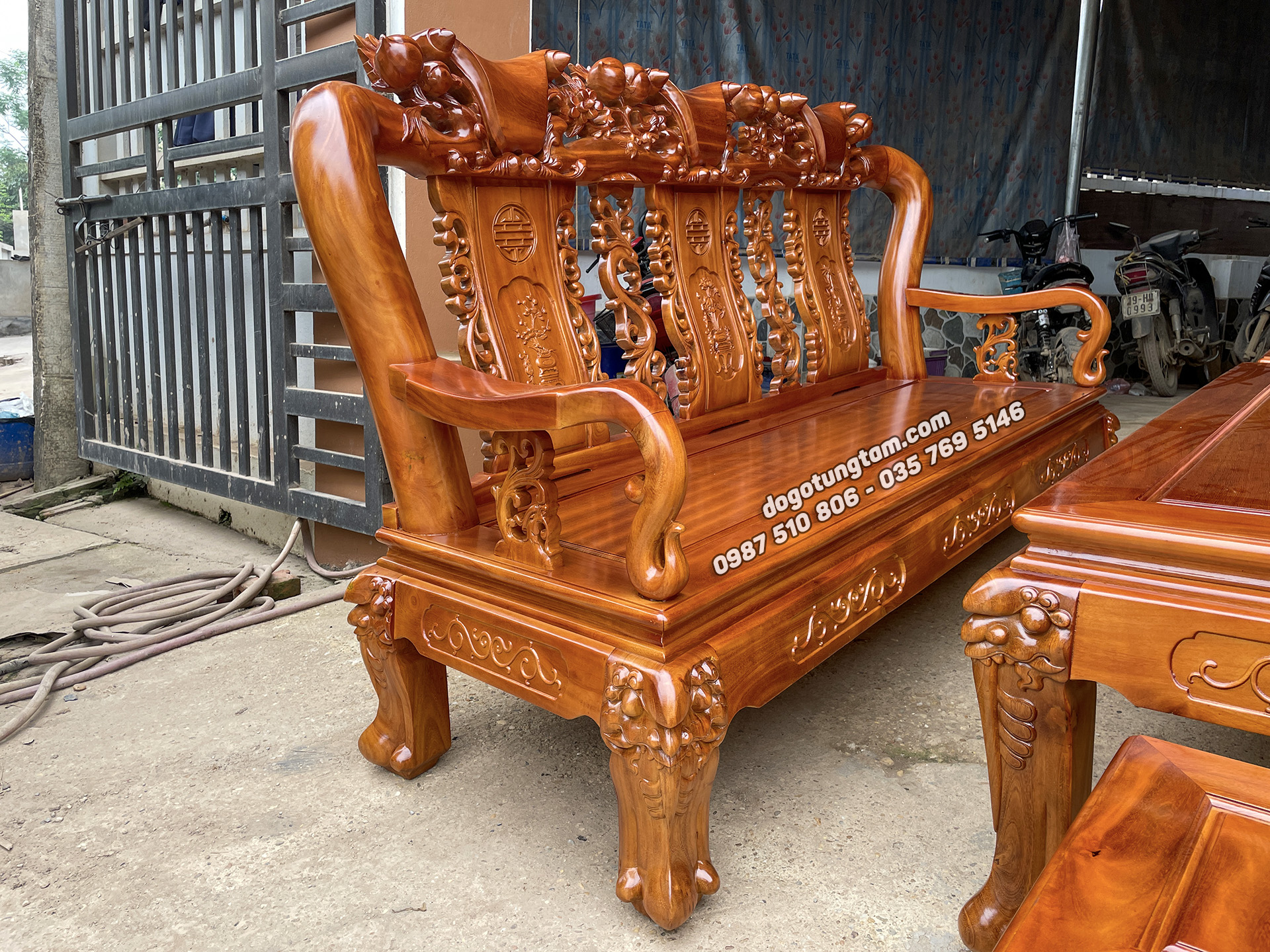 Hoàn thiện bàn ghế minh quốc đào gỗ mít ta tay cột 12