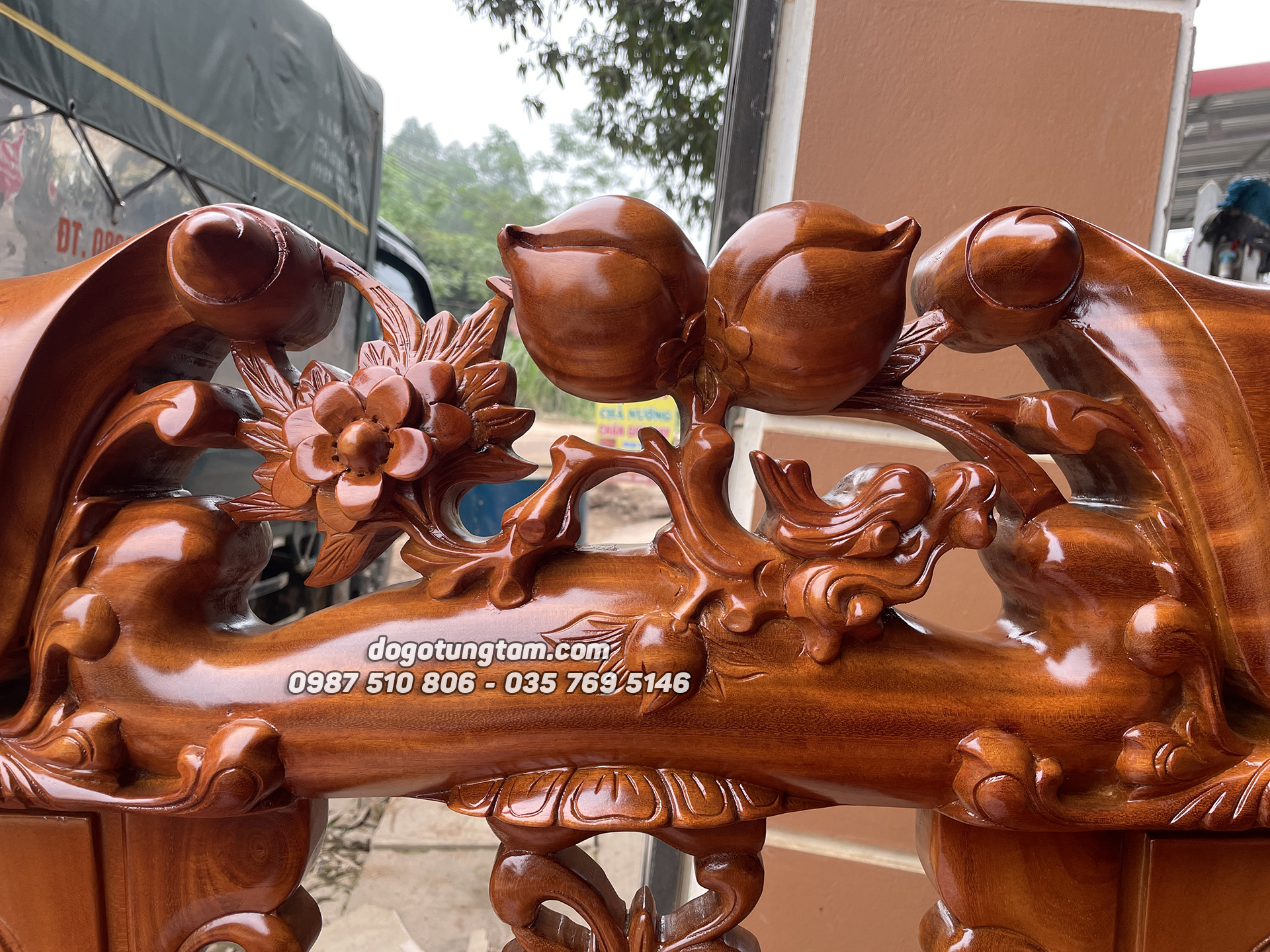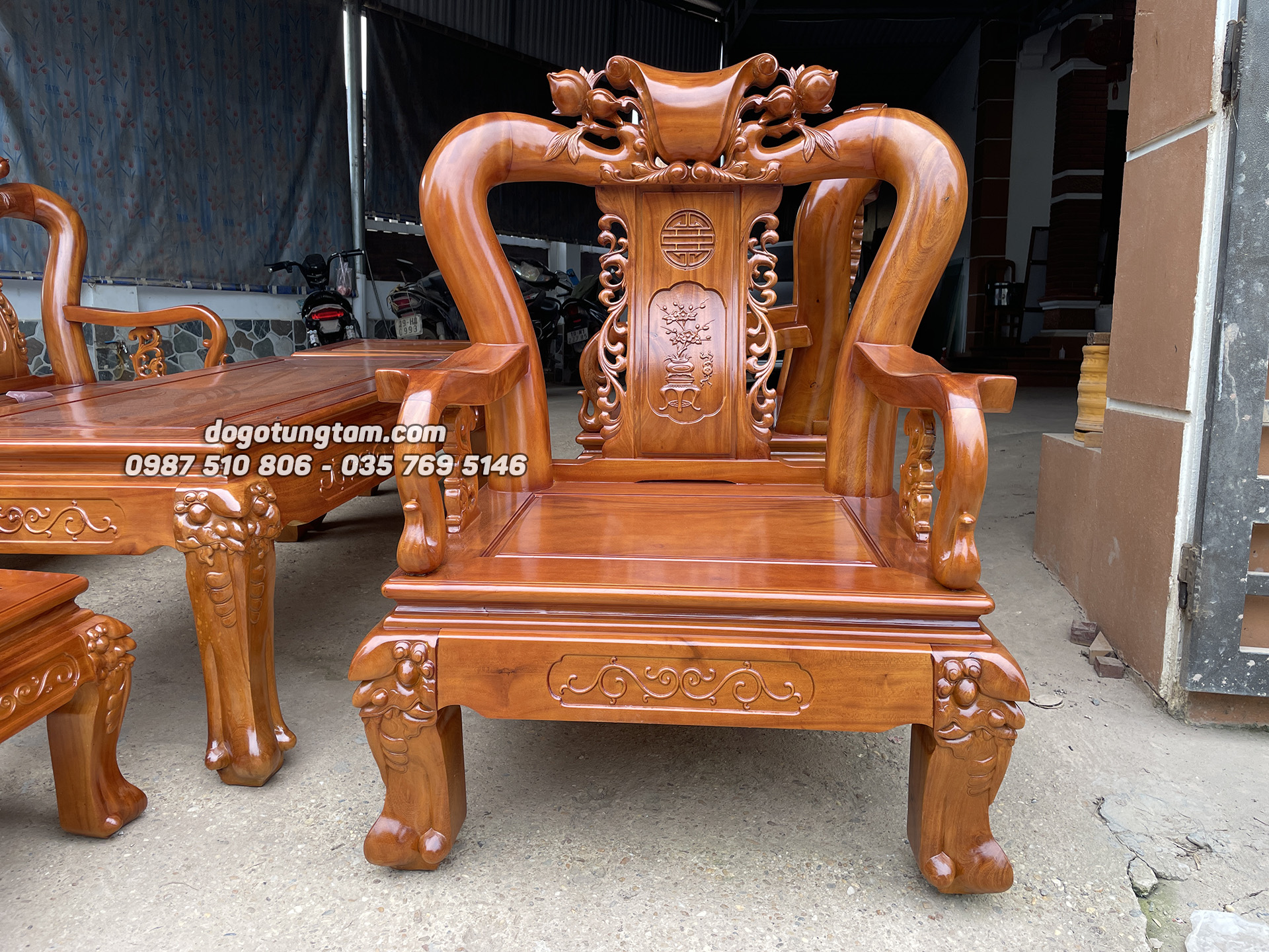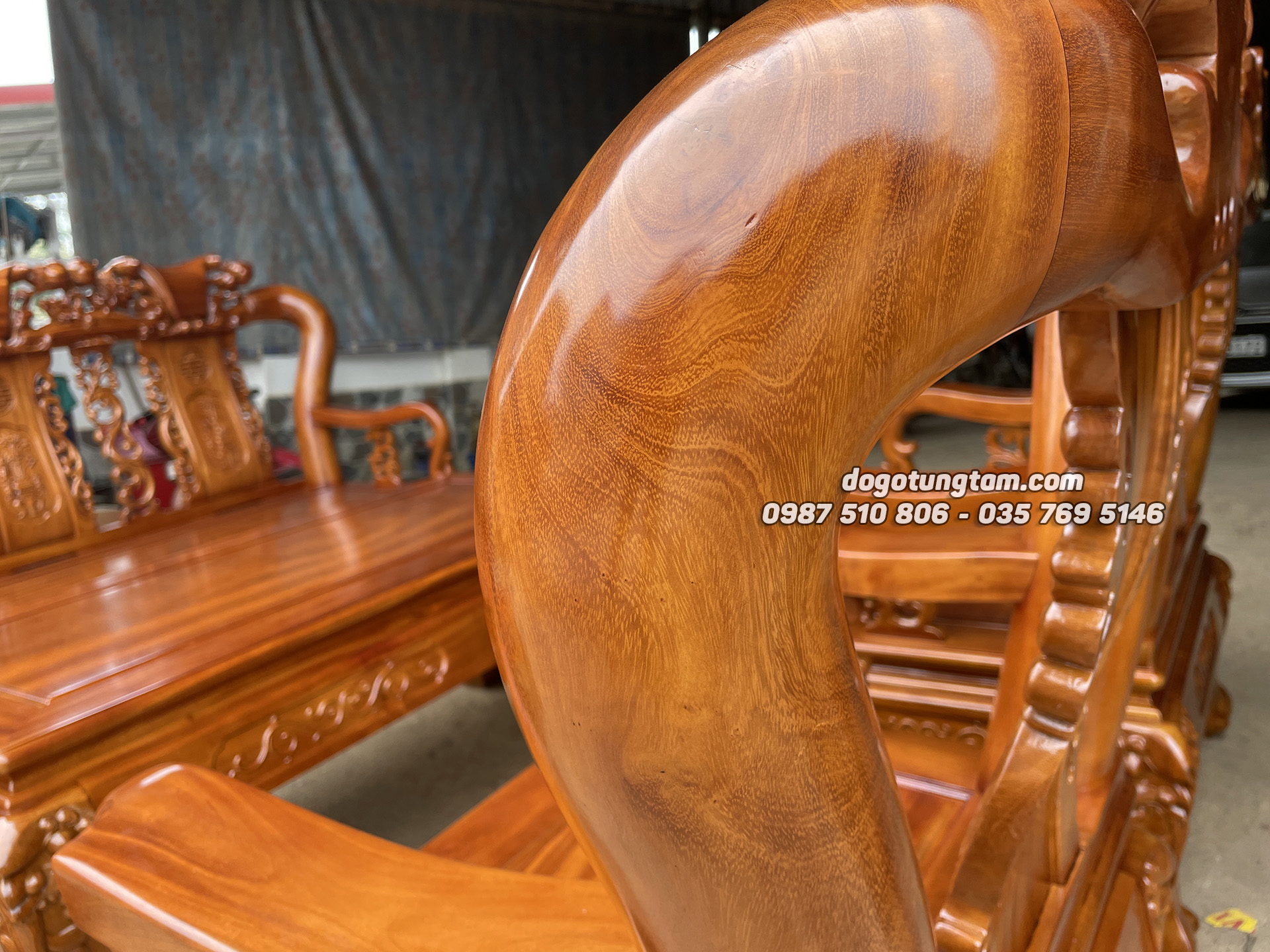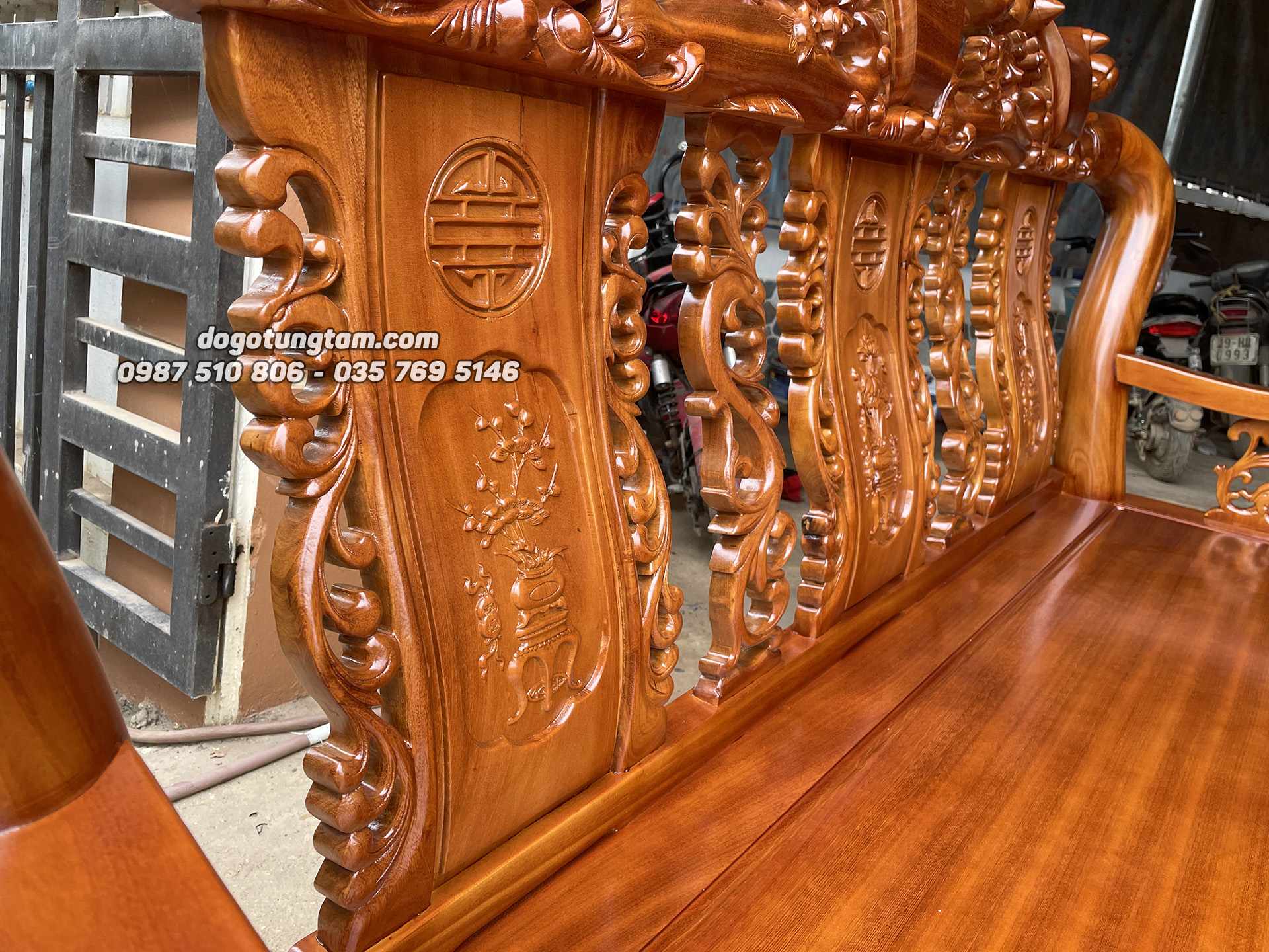 Hình ảnh chi tiết bộ bàn ghế minh quốc đào gỗ mít ta tay cột 12
