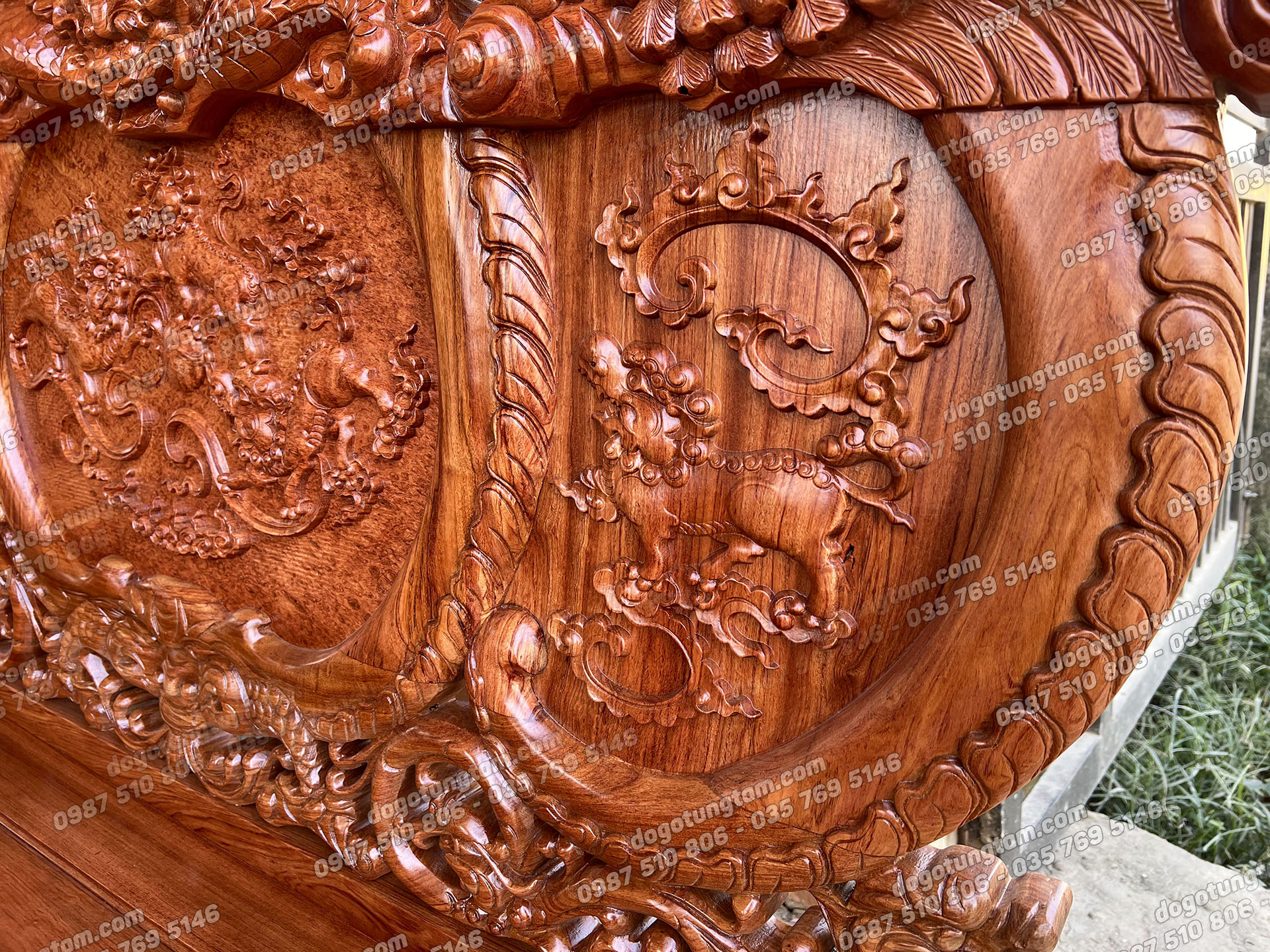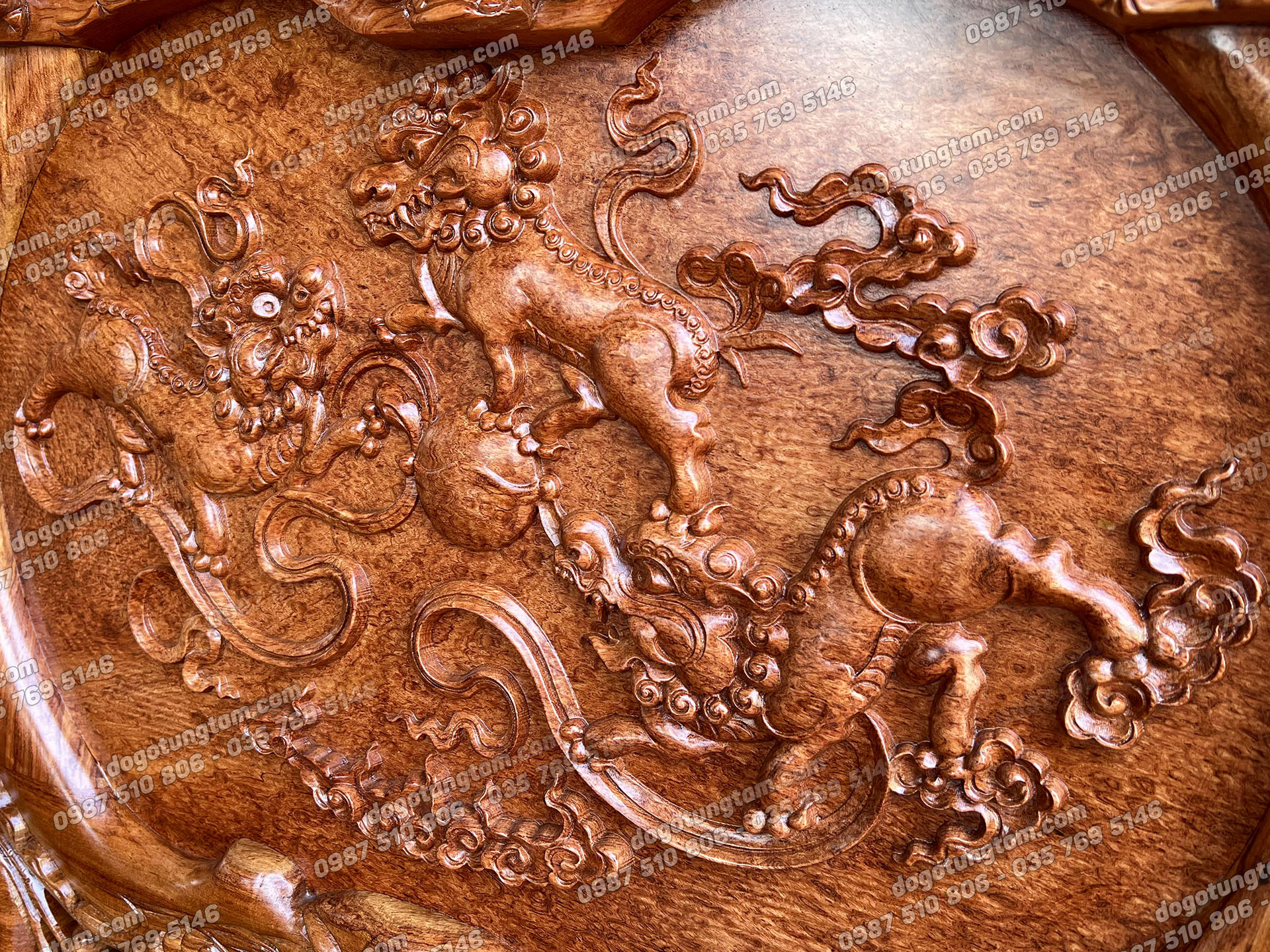 Hình ảnh chi tiết nghê bảo đỉnh cột 12 gỗ hương đá