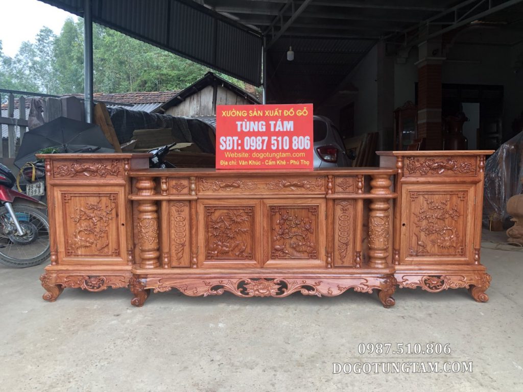 Kệ tivi Gỗ Hương Đá 2m6 Mẫu Cột Nho Vip ✩✩✩✩✩