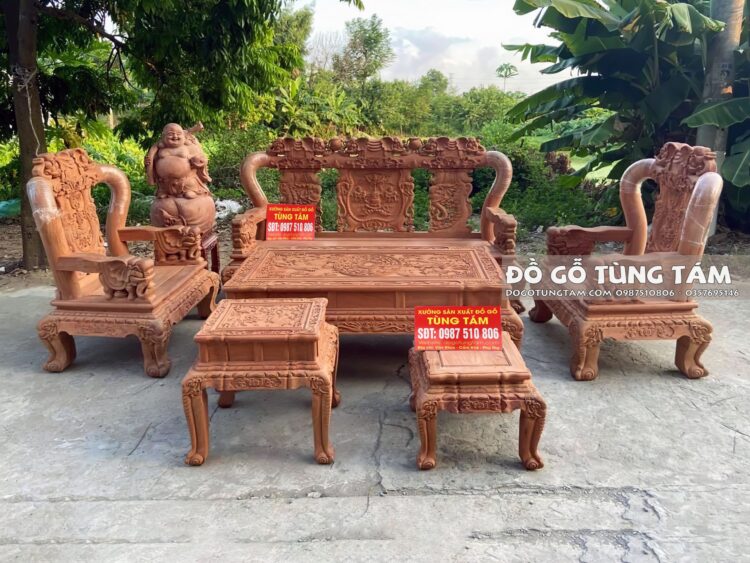 Minh Quốc Voi Gỗ Hương Đá Tay 12 Chân 14