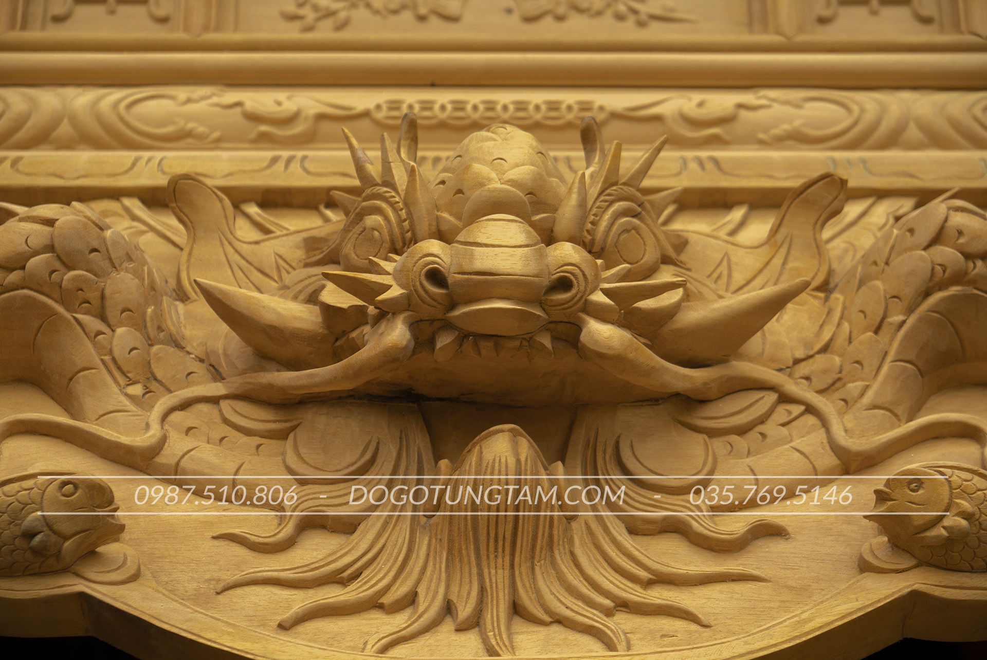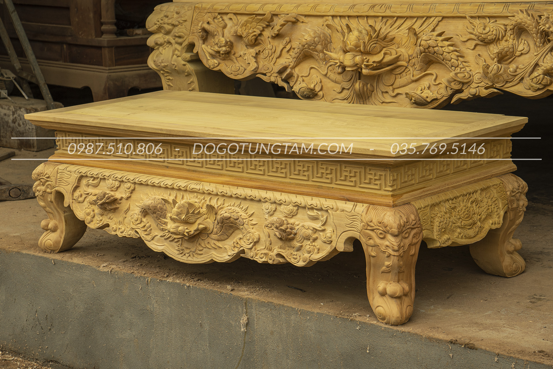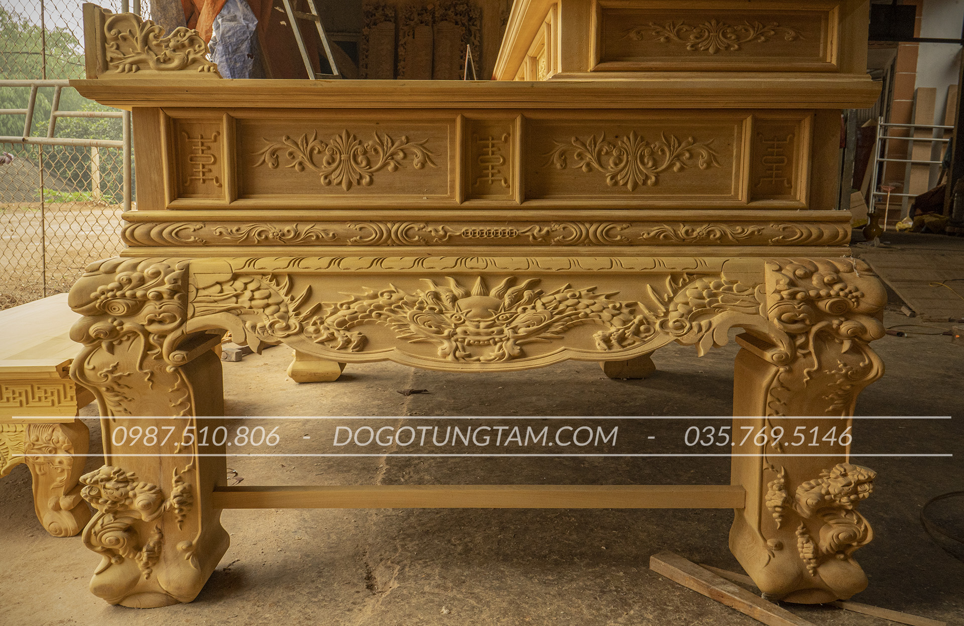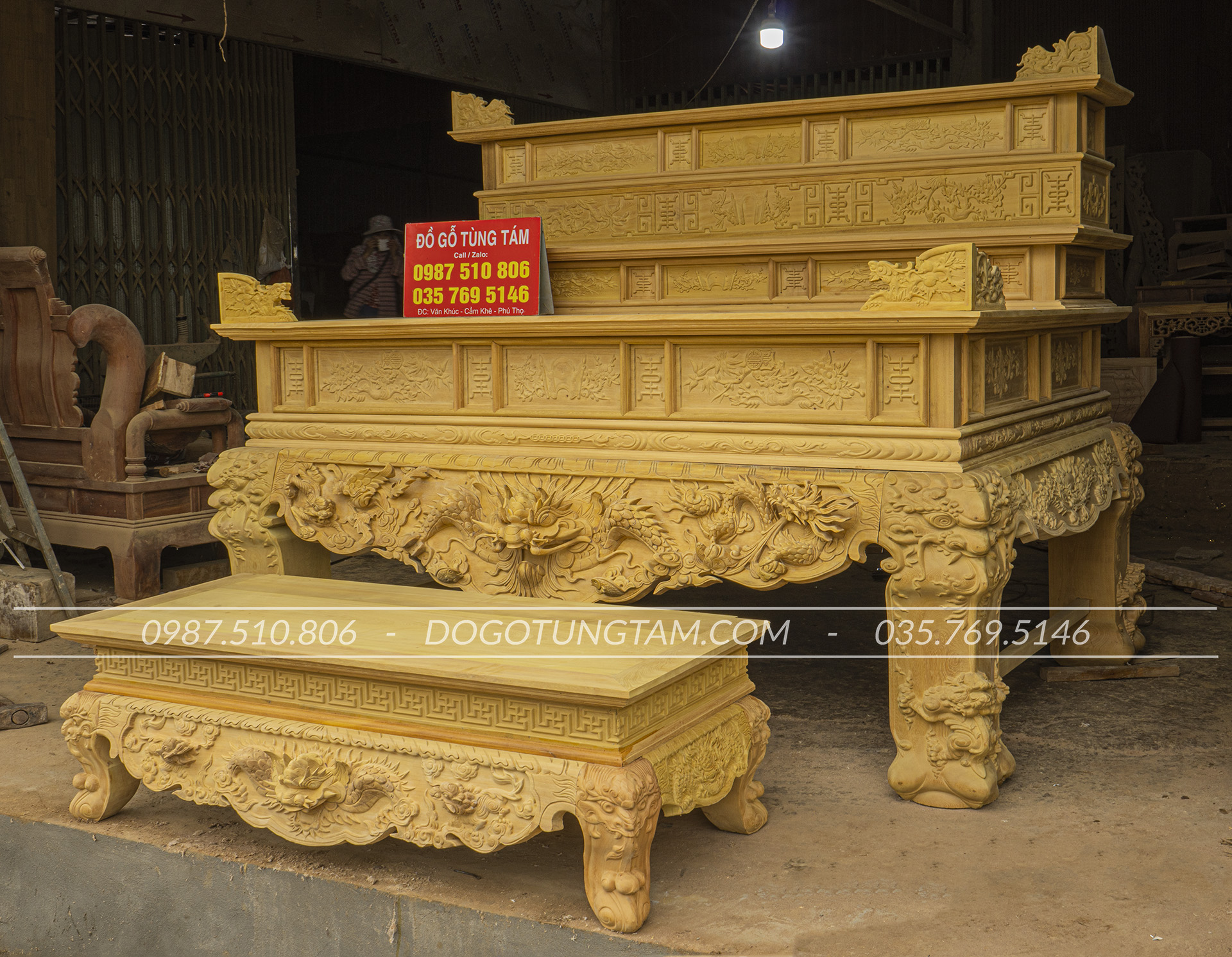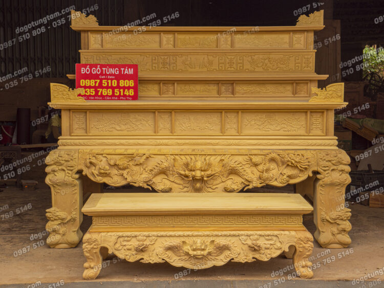 Sập Thờ Tam Cấp Tứ Linh Gỗ Mít Chân 24