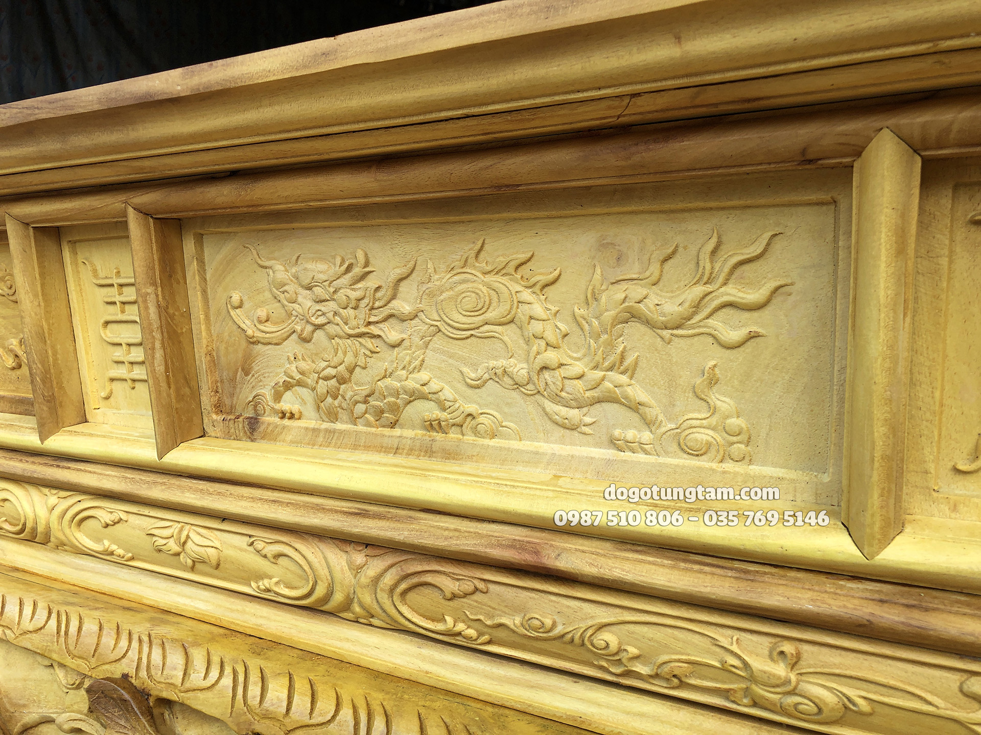 Hình ảnh sập thờ tứ linh chân nghê gỗ mít ta chân 20