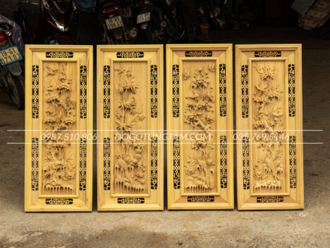 Tranh Tứ Quý Gỗ Gụ Đục Thủ Công Dày 6 Cm