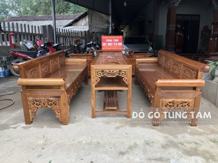 Trường Kỷ Gỗ Gụ Đục Yếm Trúc