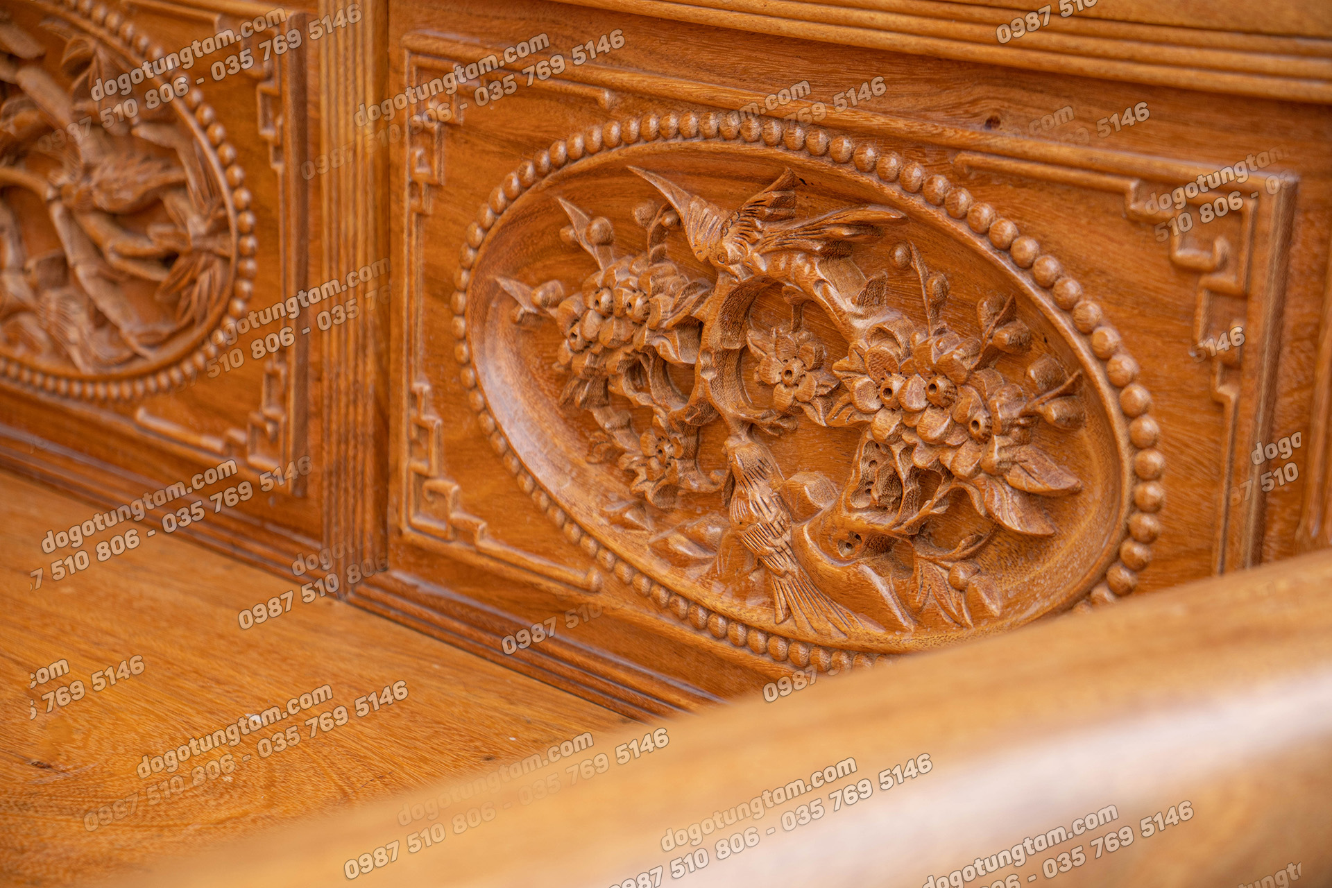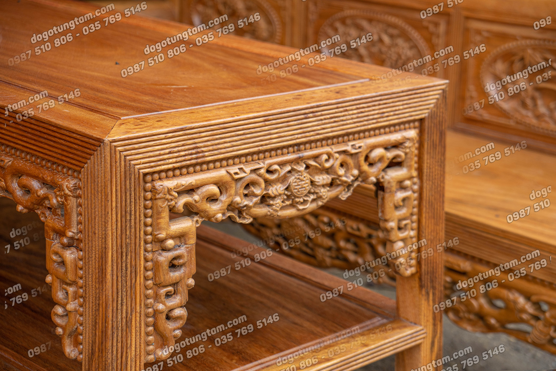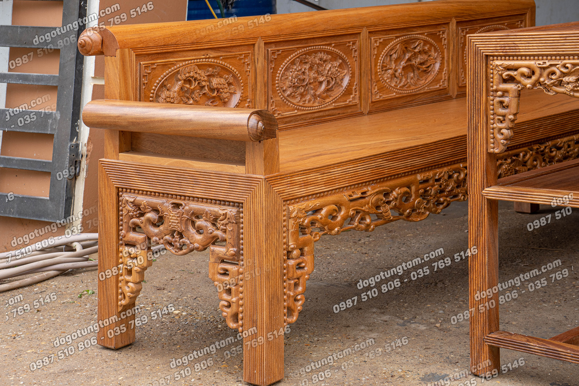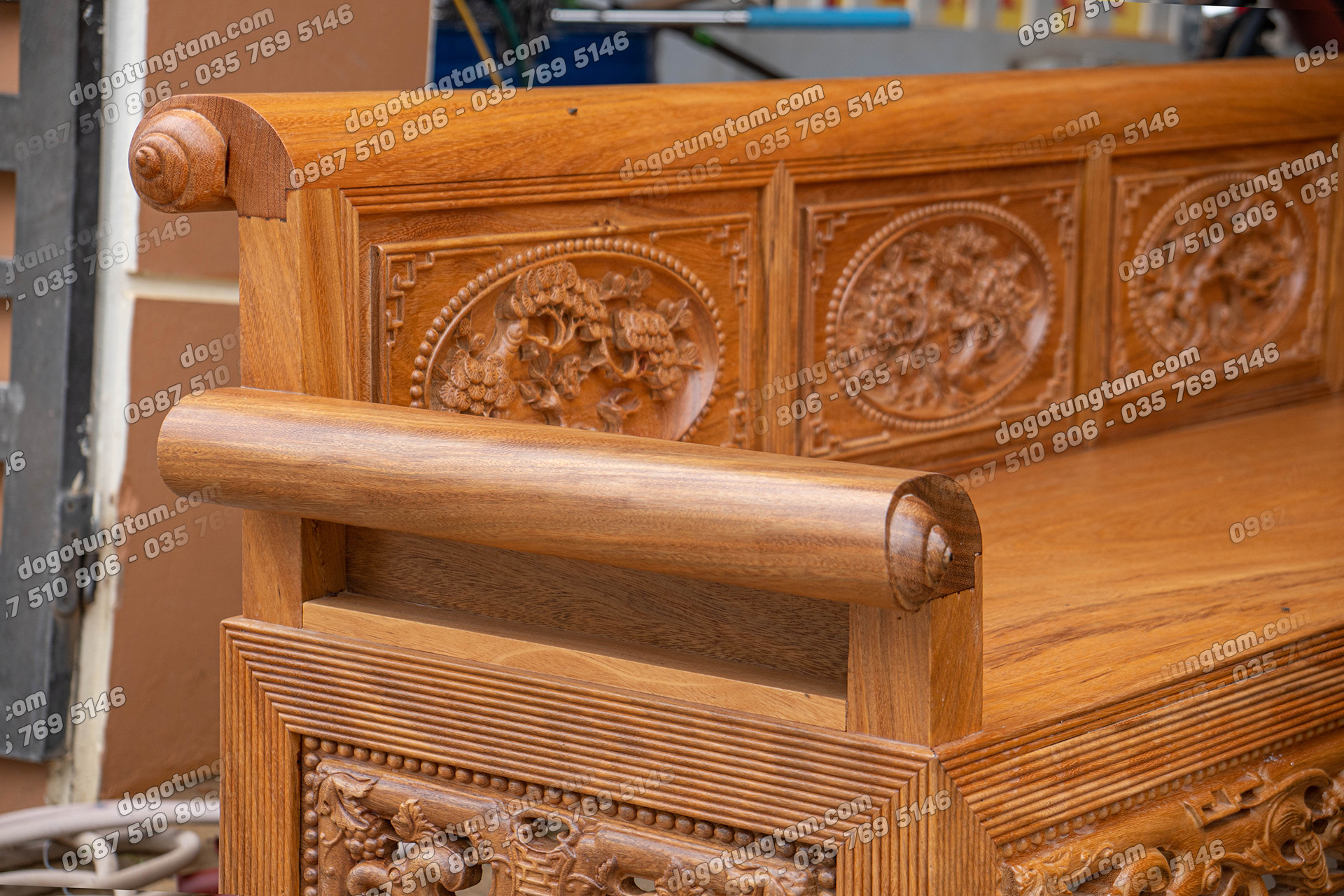 Hình ảnh chi tiết bộ trường kỷ gỗ lim vai cuốn 4 vách